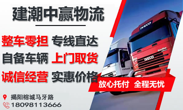同时,为了方便广大客户从揭阳物流到攀枝花的不同运输时效和物流成本要求,建潮中赢物流特推出揭阳到攀枝花多种运输方式,以此来降低从揭阳到攀枝花运输的物流成本,提高到的物流效率,以便为新老客户提供更加完善的从揭阳到攀枝花的一站式物流服务!